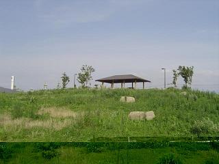 次に地名にもなっている菜切山。菜切塚は浜田町の武内家(浄専寺)に伝わる古記によれば「孝元天皇曾孫武内宿禰大臣、免位の後、難波宮松原の傍に住し給う、宿彌後此所に葬る、宿禰塚此なり」「宿禰の一子この地にとどまり朝廷に仕えた」と記されています。菜切塚は戦前までは環溝のある前方後円墳の型をしていました。昭和10年代区画整理のため環溝は東北の幹線道路となり従来の約半分足らずの広さになりました。市民に親しんでもらうため菜切山緑地として市の管理に移行されました。